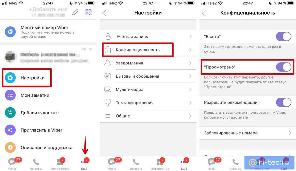 - Viber: настройки чата → "Отправлять уведомления о прочтении"